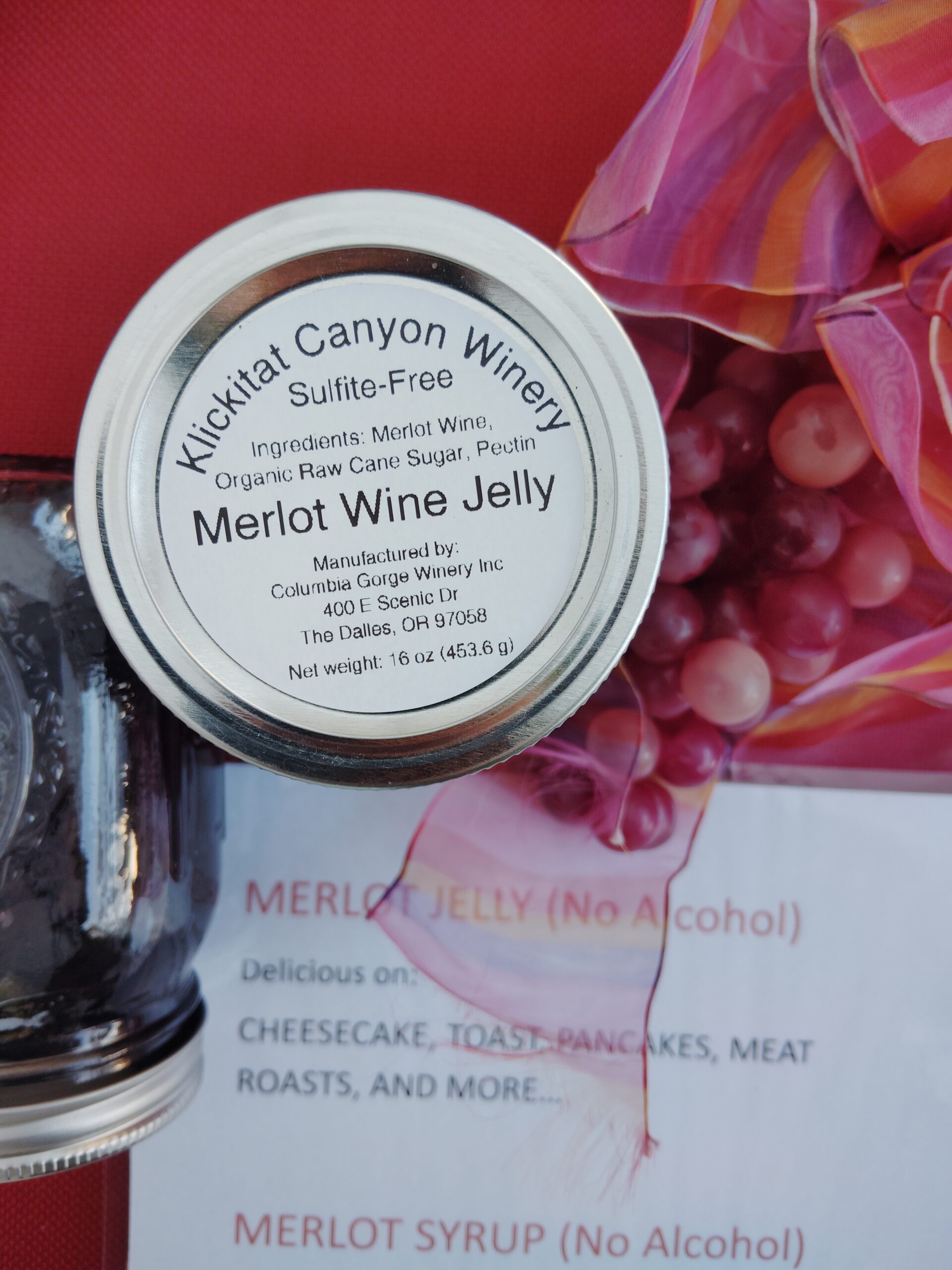 Wine Jelly – Merlot wine, raw cane sugar, lemon, fruit pectin